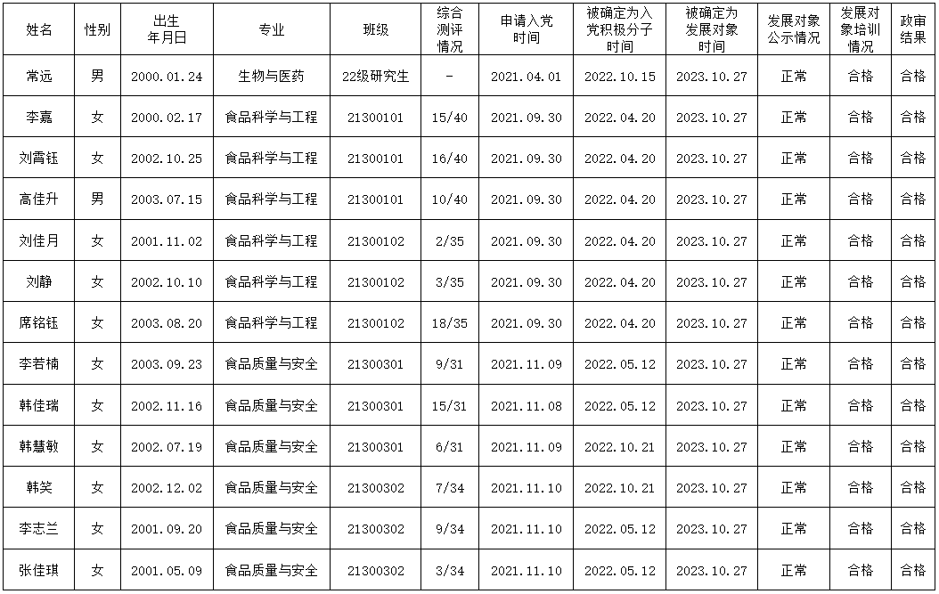根据发展党员工作有关规定,研究生党支部、员工第一党支部、员工第二党支部拟于近期召开支部大会讨论接收常远等13名同志为中共预备党员。为了加强发展党员工作的民主监督,保证新发展党员的质量,现将这些同志的有关情况予以公示。如对这些同志入党有不同看法,请向党委组织部反映。反映情况和问题必须实事求是、客观公正。
