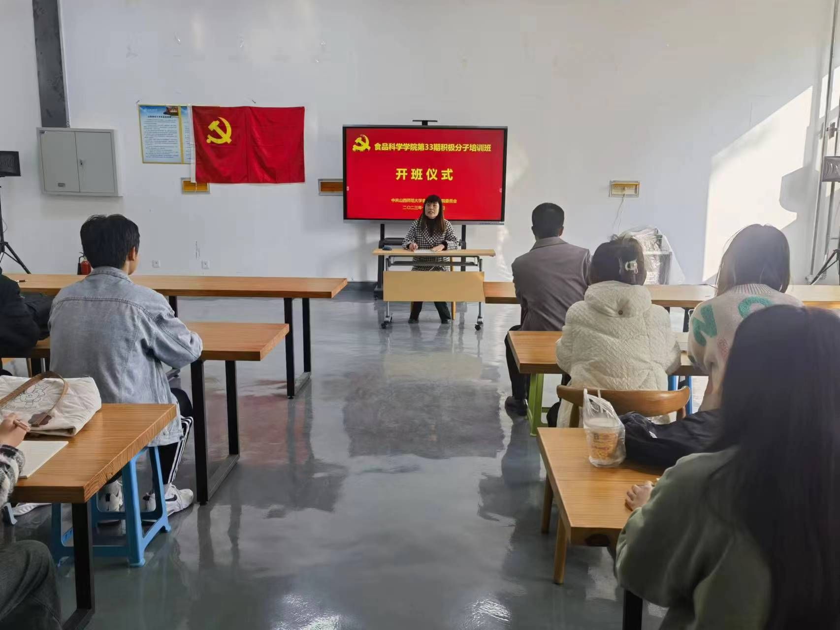 首先,由食品科学公司党委副书记高誉嘉老师进行讲话,她围绕开展培训班的总体要求以及培训目的两个方面点明了开展培训班的意义,要求学员们:一要端正入党动机,正确理解和认识党组织对入党积极分子进行教育培训的重要性;二要认真学习党的创新理论和科学文化知识,培养强烈的创新意识,适应时代发展的要求,争做学习型人才;三要端正学习态度,讲究学习方法,提高学习的效果。接下来,由员工代表康鑫新进行演讲,代表培训班的同学对以后的学习工作作出保证。最后,由卢锦斌老师对此次开班仪式进行总结。