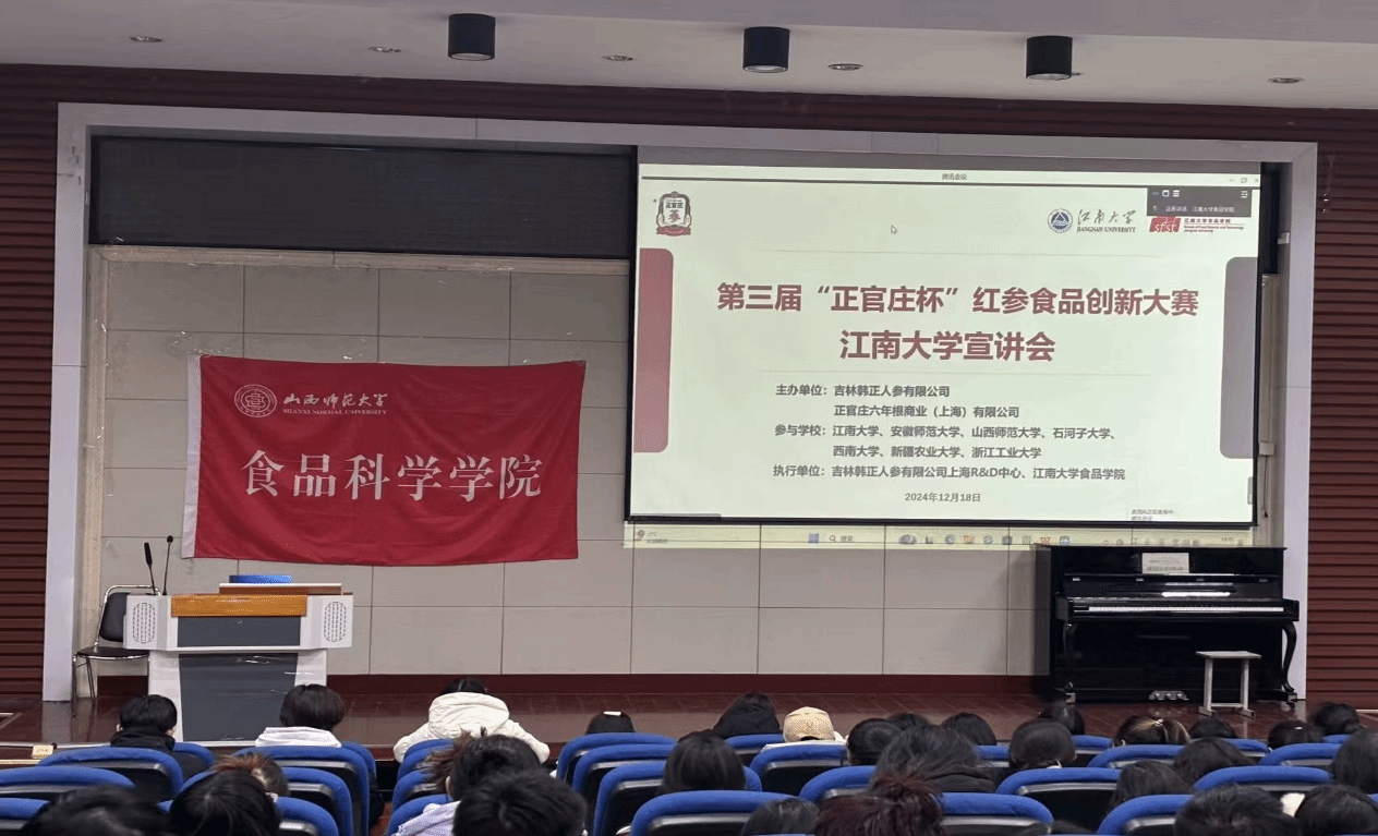 为鼓励老员工发挥创造力,提出新颖的创业想法和解决方案,进一步加强学风建设,引导老员工关注红参领域,推动红参产品创新、市场拓展和产业升级,山西师范大学yl7703永利集团官网的部分员工和安徽师范大学、石河子大学、西南大学、新疆农业大学以及浙江工业大学五所大学食品学院的部分员工于12月18日共同参加了由江南大学食品学院举办的正官庄宣讲会线上会议。