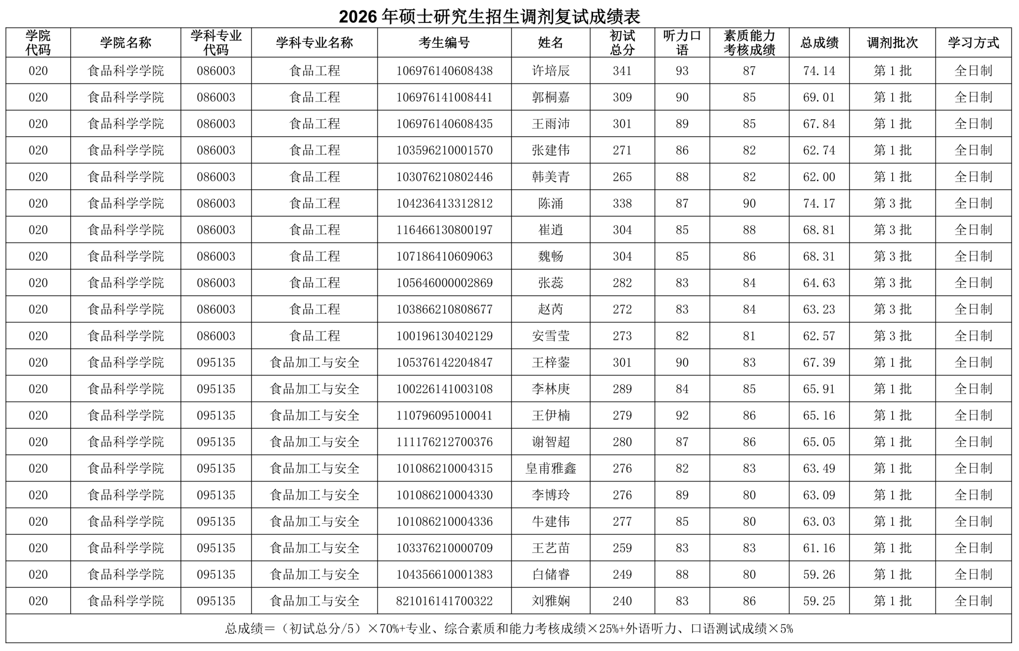 yl7703永利集团官网2026年硕士研究生调剂复试成绩公示